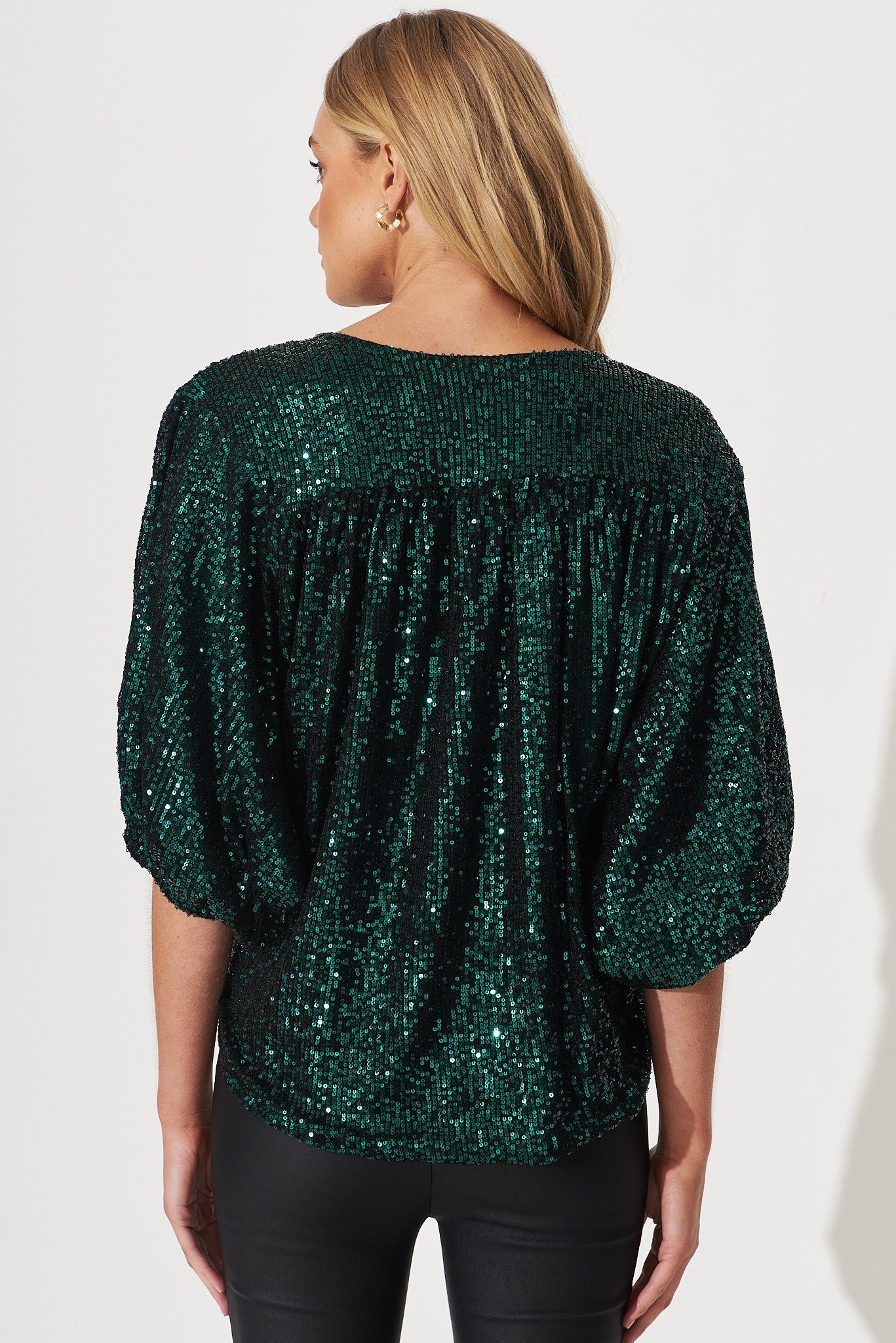 Work to wine dressing just got easier with our Sequin Mock Wrap Top! Wear to the office with a sleek pencil skirt and pumps, then come 5PM add a stiletto, bold lip, and let those sequins sparkle!