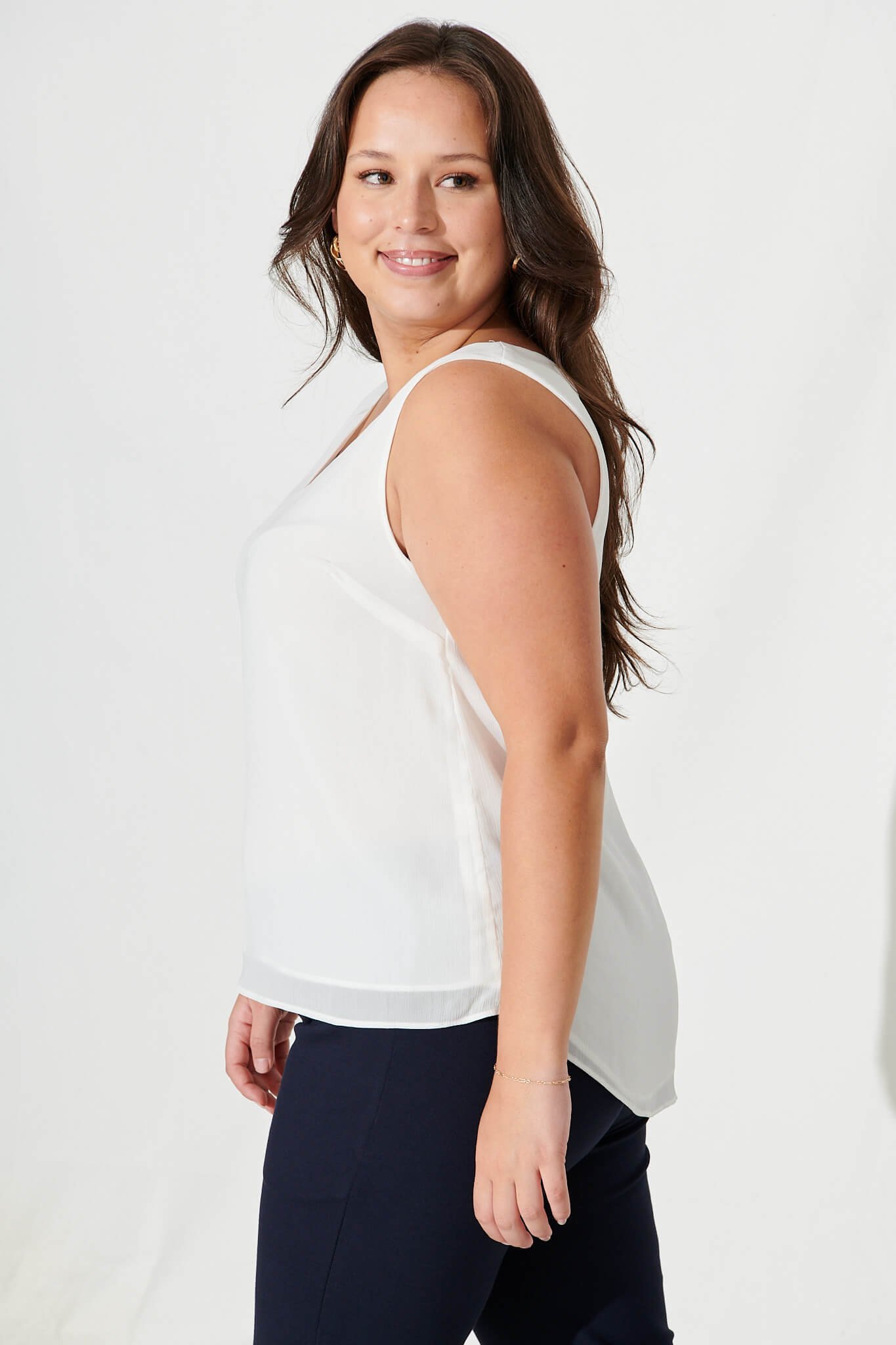 The Top in White is the must-have, versatile piece your wardrobe needs! This top is made from a lightweight, breathable fabric and is finished in a classic V-neck cut. Perfect for work, wines and weekends, pair yours with your favourite denim and sandals for an effortlessly chic look!