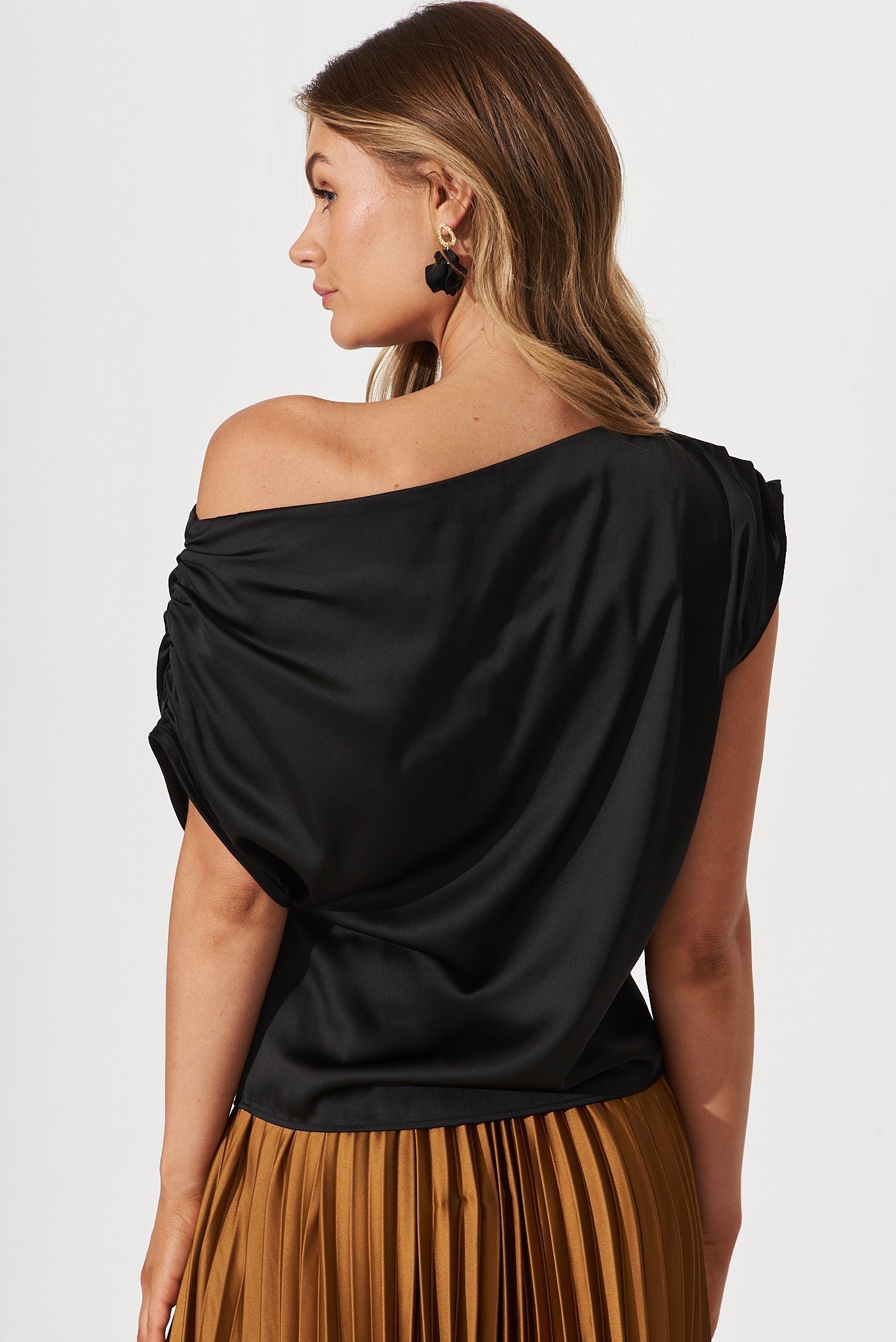 - One off shoulder with pleated detail