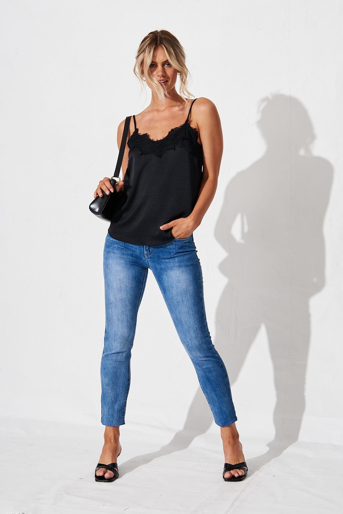 A contemporary take on the wardrobe staple, our Top is a must-have piece for versatility and effortless style. With lace accents & adjustable straps, it’s the perfect companion to pair with denim & a blazer or back with your favourite printed bottoms.
