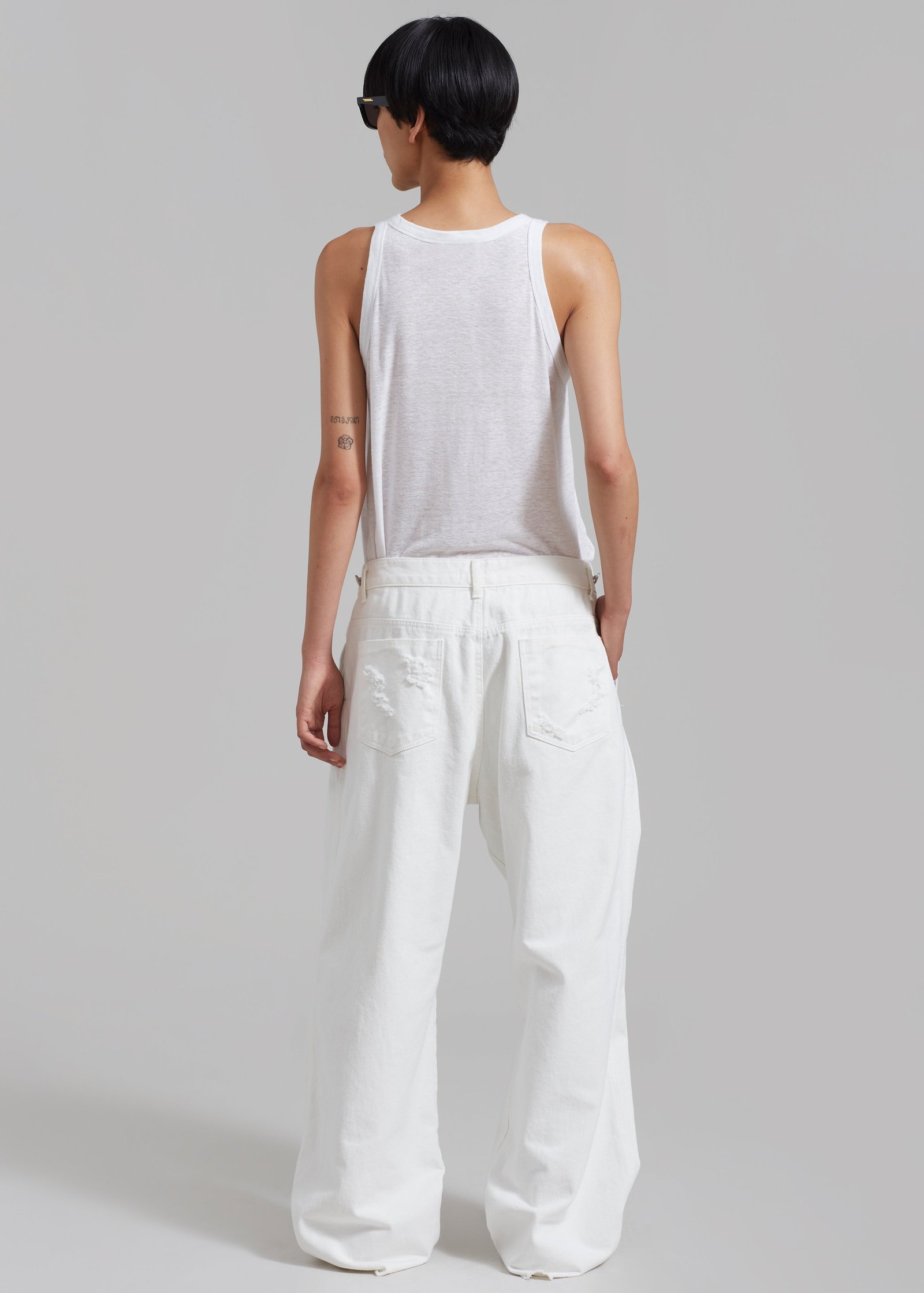 Back patch pockets with istressed detailing