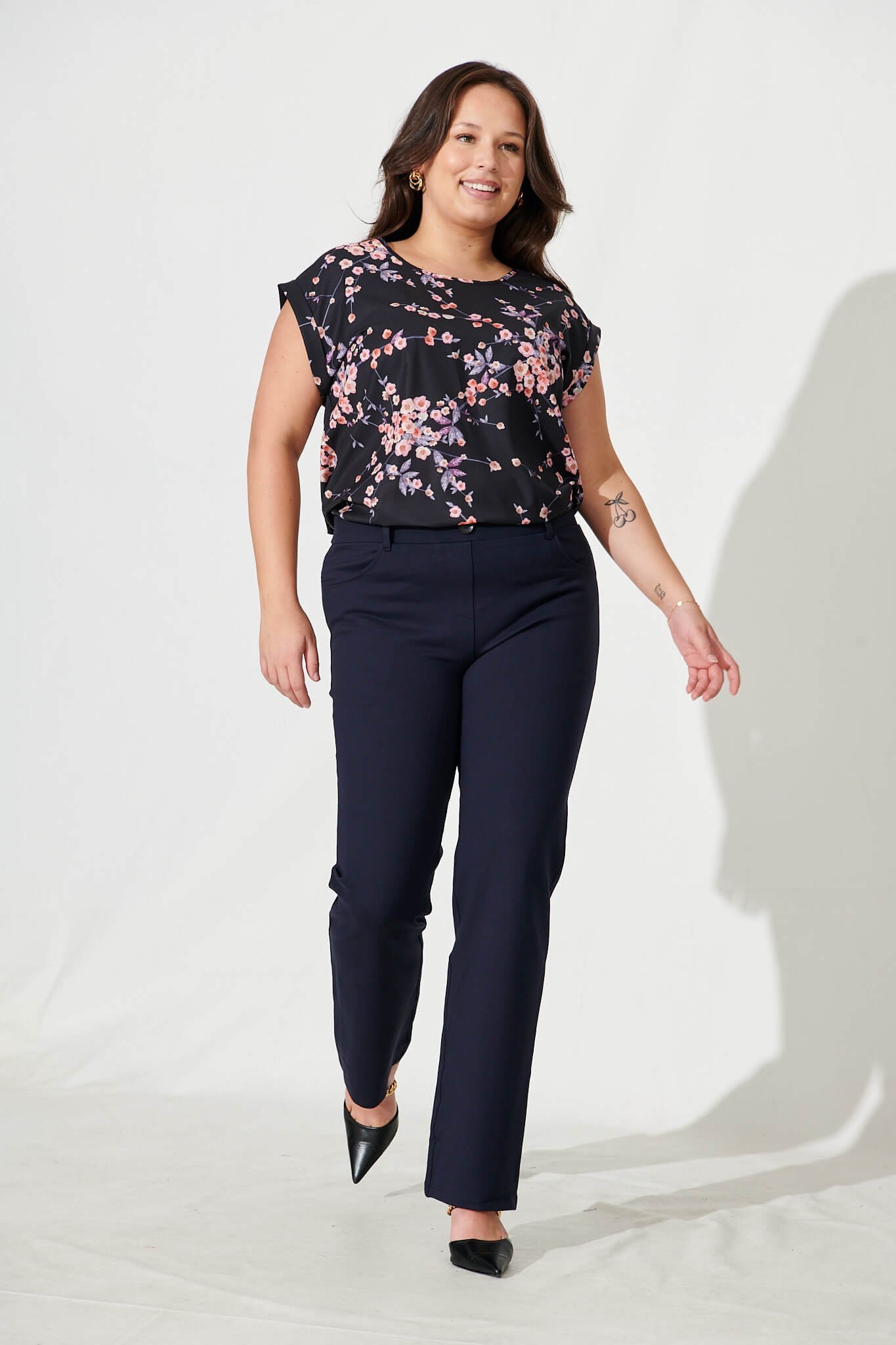Our Top in Black with Cherry Blossom is lightweight and cut in a relaxed t-shirt shape. Available in the prettiest prints it styles back perfectly with office wear taking you from desk to dinner with ease. We also love it styled with your favourite casuals.