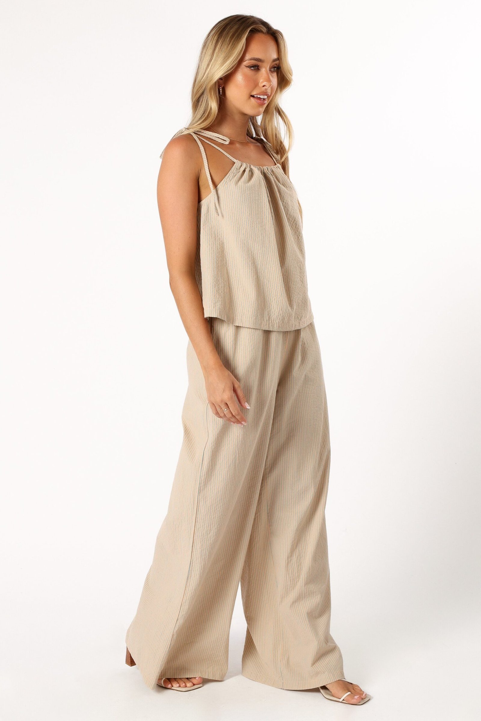 Designed for today’s dynamic woman, these high-waisted, wide-leg pants radiate effortless chic comfort. The elasticised waistband offers a snug, customisable fit for all-day wear, while the functional pockets add a practical touch to their sophisticated silhouette.