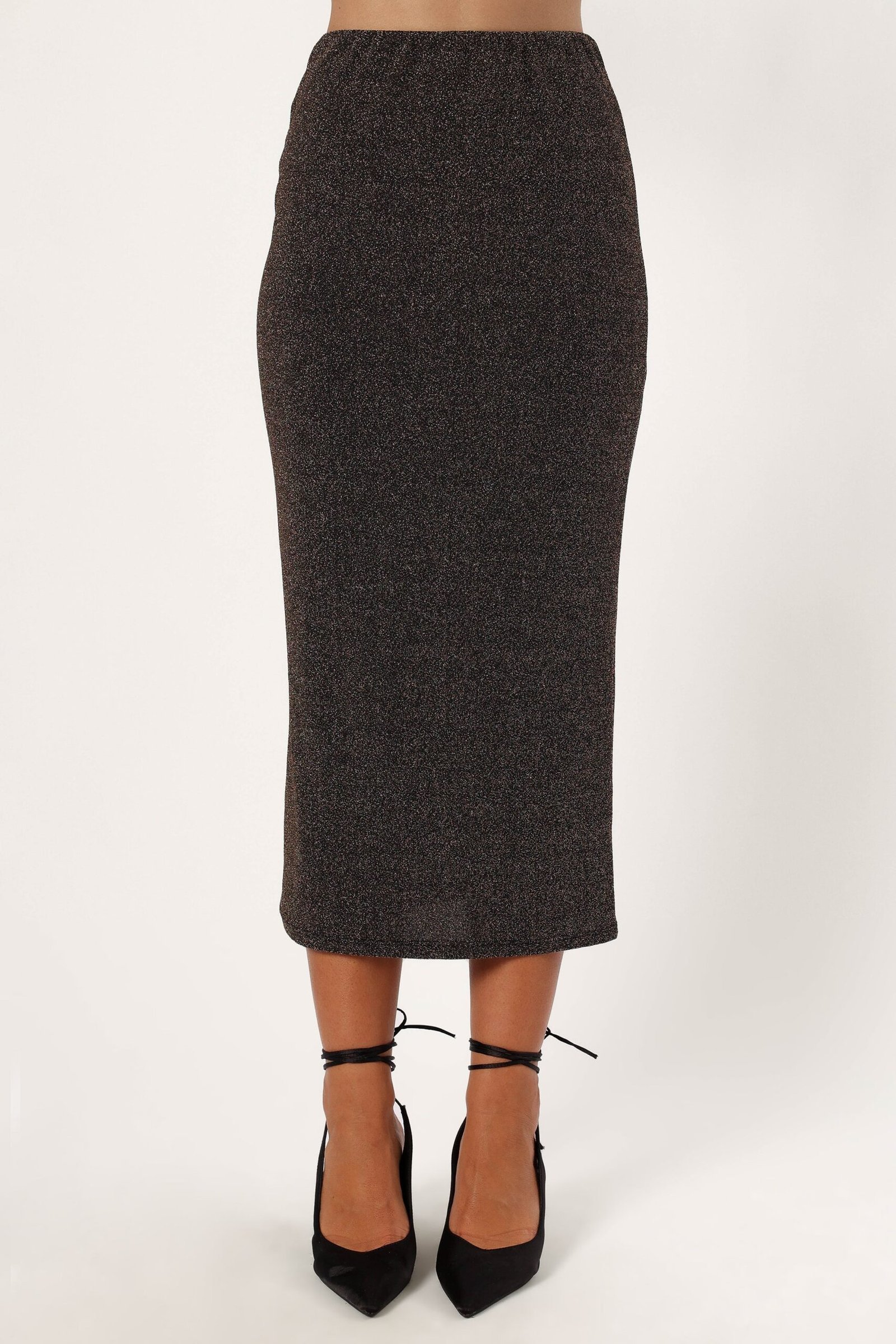 This high-waisted stunner, with an elasticised waist band, promises a flattering fit for all body types. It’s crafted with a dash of bronze lurex thread, adding a subtle shimmer that catches the light beautifully. The pull-on design ensures easy wear, making it a perfect blend of comfort and style.